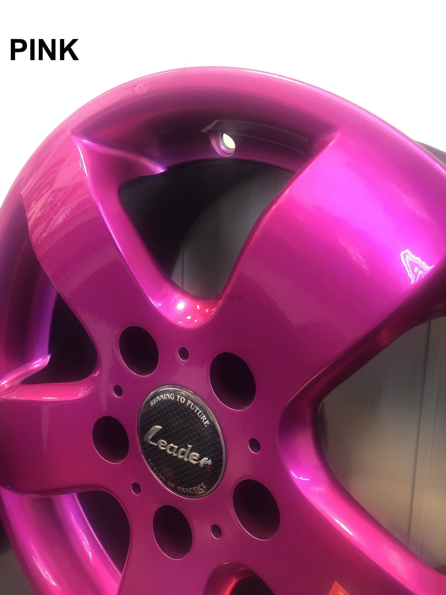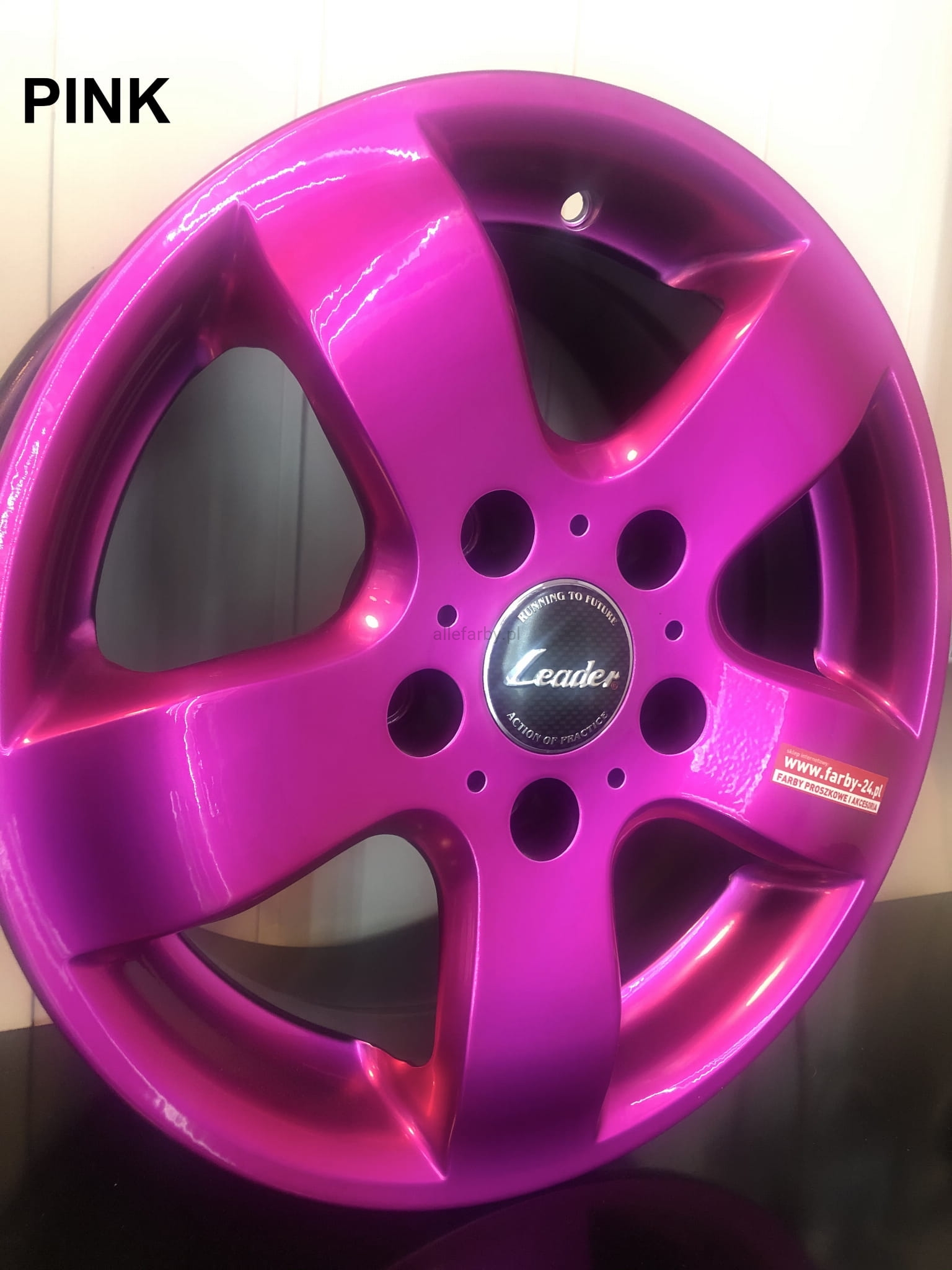 1. Nanosimy na element jako podkład farbę proszkową PREMIUM CHROM 65, wygrzewamy w 190 C / 10 MIN, następnie na ostudzony element nanosimy farbę proszkową TRANSPARENT PINK, wygrzewamy w 180 C / 10 MIN.